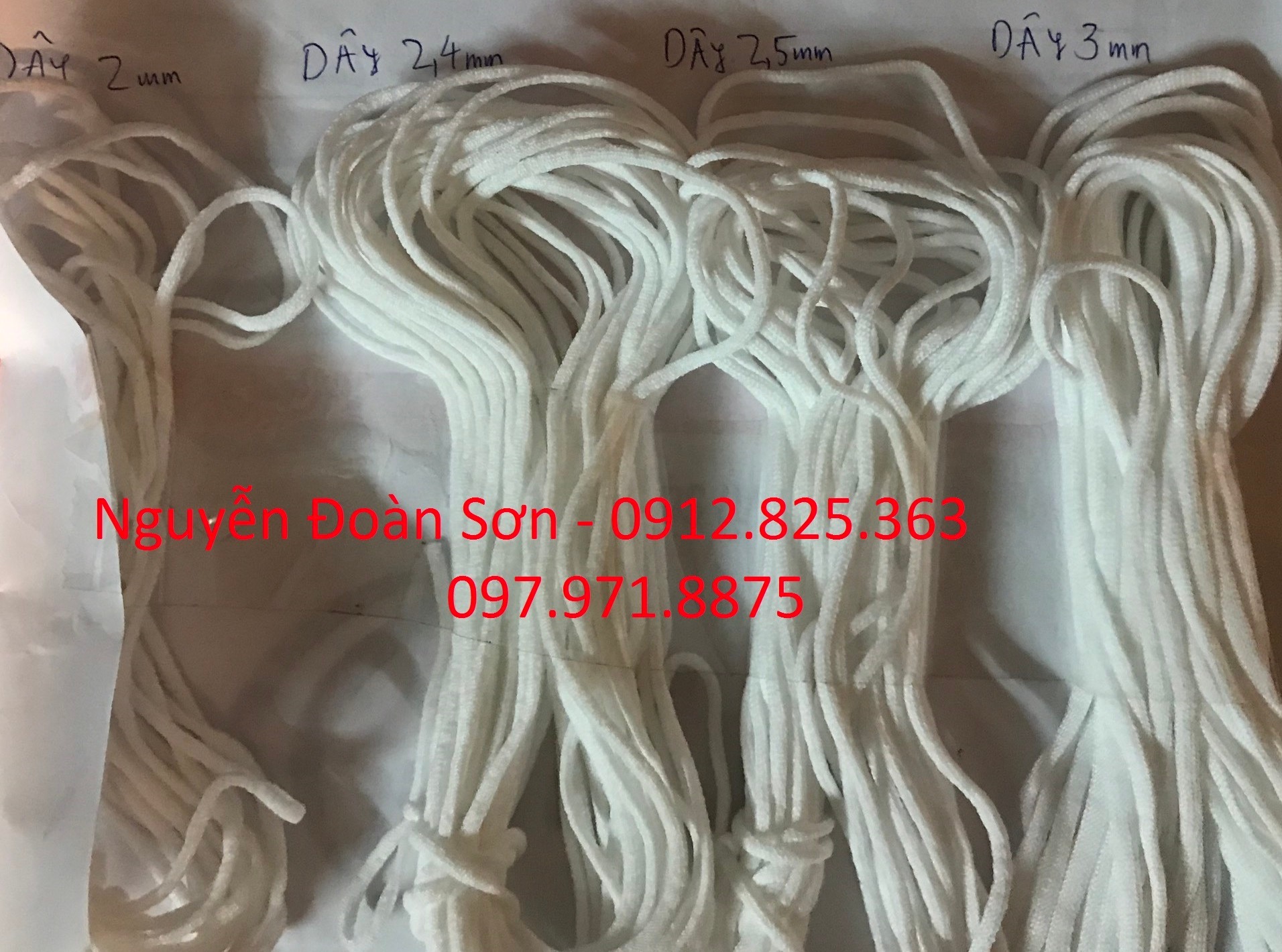 Công ty chúng tôi chuyên cung cấp dây chun khẩu trang y tế, khẩu trang vải kháng khuẩn. Kích thước sản phẩm tùy thuộc vào nhu cầu của quý khách khàng (3mm, 2,5mm, 3,2mm...)